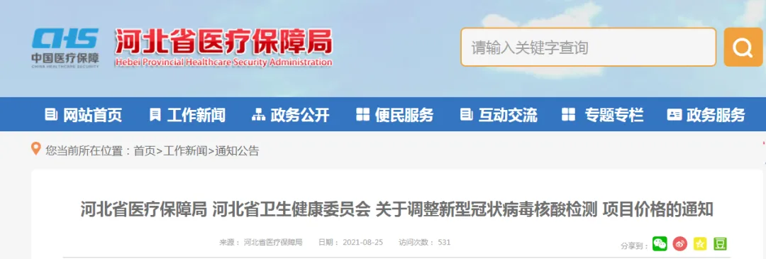 為進(jìn)一步做好新冠肺炎疫情防控和核酸檢測(cè)工作,減輕群眾負(fù)擔(dān),8月25日,省醫(yī)療保障局、省衛(wèi)生健康委聯(lián)合發(fā)布《關(guān)于調(diào)整新型冠狀病毒核酸檢測(cè)項(xiàng)目?jī)r(jià)格的通知》(以下簡(jiǎn)稱《通知》),決定調(diào)整新型冠狀病毒核酸檢測(cè)項(xiàng)目?jī)r(jià)格。《通知》具體內(nèi)容如下:一、將新型冠狀病毒核酸檢測(cè)項(xiàng)目的最高限價(jià)由每人份80元調(diào)整為60元;10個(gè)樣本混合檢測(cè),最高限價(jià)由每樣本20元調(diào)整為15元;5個(gè)樣本混合檢測(cè),最高限價(jià)由每樣本30元調(diào)整為25元。