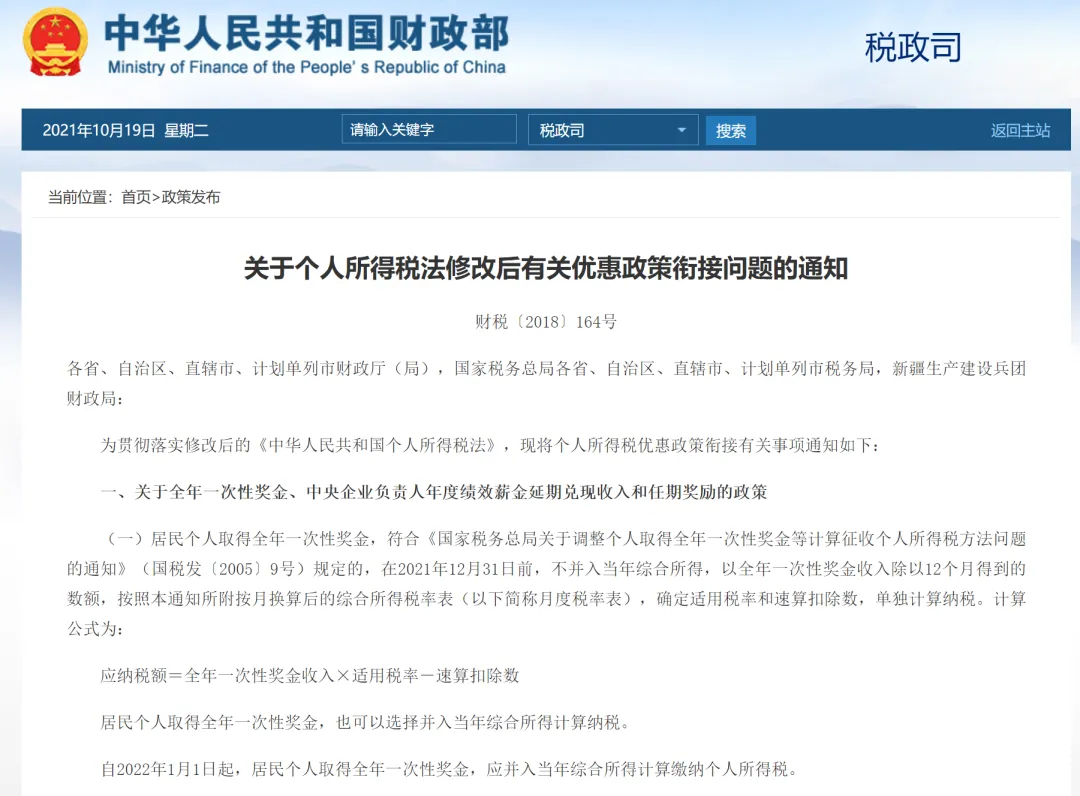 從2022年1月1日起,年終獎(jiǎng)就要并入當(dāng)年綜合所得一并計(jì)算繳納個(gè)人所得稅了。